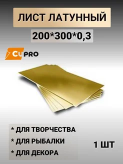 Латунный лист 200х300х0,3 мм, заготовка для творчества 1 шт