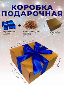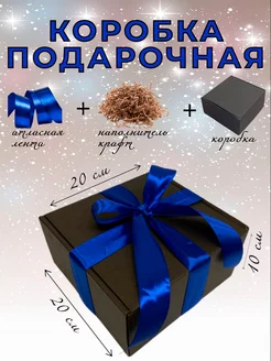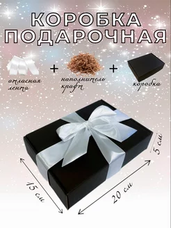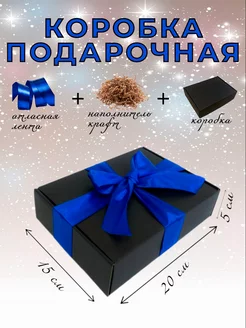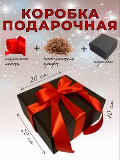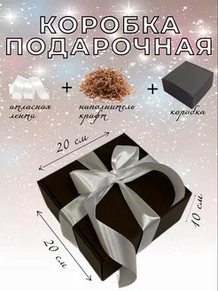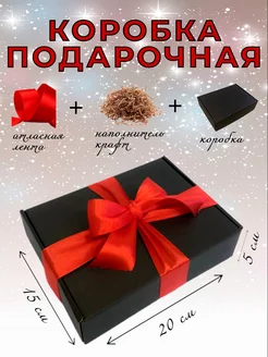Коробка Подарочная Чёрная с наполнителем и лентой