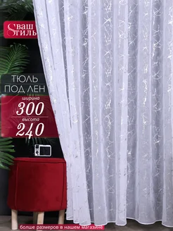 Тюль под лен в спальню и гостиной 300х250 см длинная