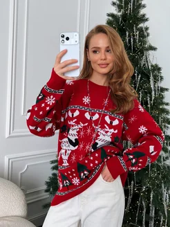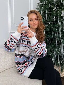 Свитер оверсайз с новогодним принтом