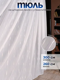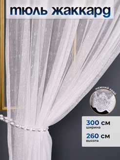 Тюль 300 260 на кухню на ленте жаккард с узором 1 шт