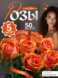 Искусственные цветы розы, оранжевые- 5 шт. 50 см