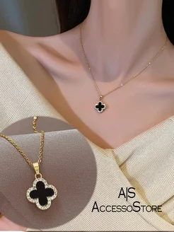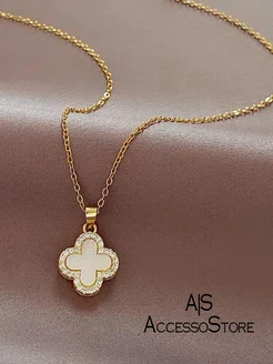 Цепочка на шею. Подвеска на шею клевер. Бижутерия. Кулон
