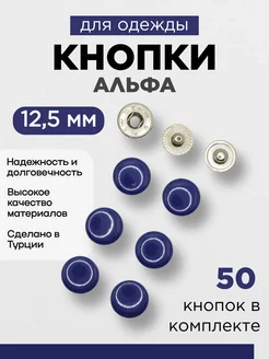 Кнопки альфа 12,5мм эмаль стальные Синий 50штук