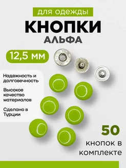 Кнопки альфа 12,5мм эмаль стальные Салатовый 50 штук