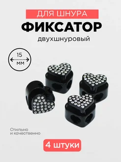 Фиксаторы для шнурков металл двойные Черный сердце стразы