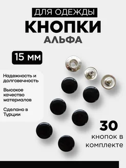 Кнопки альфа 15 мм сталь эмаль Черный 30 штук