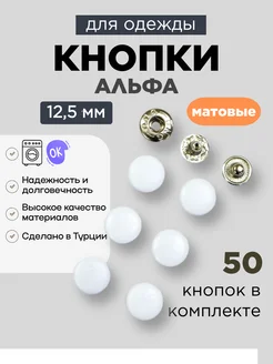 Кнопки альфа 12,5мм эмаль стальные Белый матовый 50штук