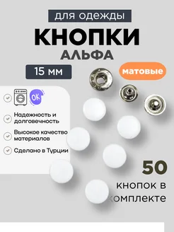 Кнопки альфа 15мм сталь эмаль Белый матовый 30 штук