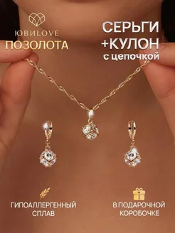 Набор бижутерии серьги с цепочкой и кулоном