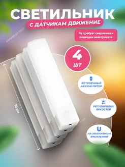 Светильник с датчиком движения беспроводной. Умный LED 4 шт