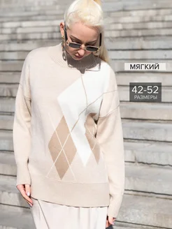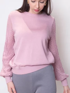 Джемпер тонкий нарядный больших размеров ажур рукав