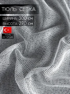 Тюль сетка в гостиную под лен 300х280 готовая на ленте