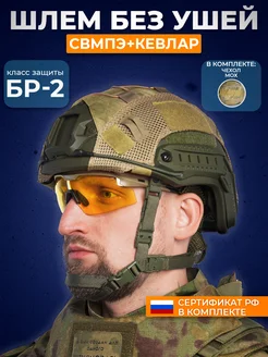 Каска СВМПЭ военная тактическая без ушей чехол мох