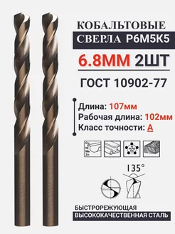 Сверла по металлу 6.8 мм. Р6М5К5. Набор 2 шт. Кобальтовые