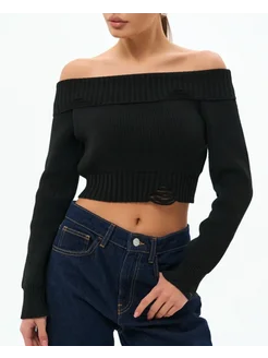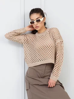 кофта вязаная укороченная сетка ажурный свитер оверсайз