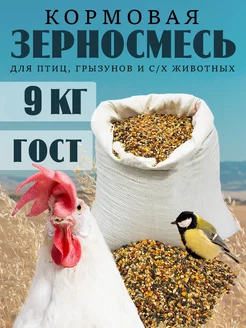 Корм для кур, птиц и грызунов зерновой 9 кг