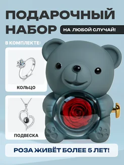 Мишка шкатулка с розой в колбе подарок женщинам