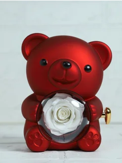 Шкатулка-медведь с розой в колбе подарок