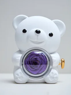 Вращающаяся шкатулка-медведь с розой в колбе