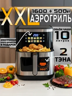 Аэрогриль электрический с 2 тэнами для дома 10 литров 2100ВТ