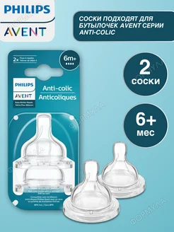 Cоски антиколиковые на бутылку Avent для густых жидкостей 6+