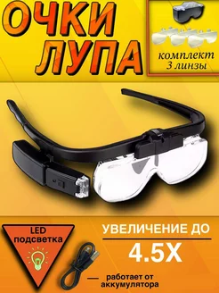 Ювелирные Очки лупа увеличительные с подсветкой налобные