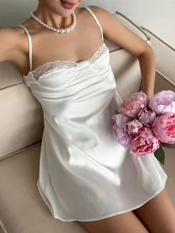Ночная сорочка короткая сексуальная кружевная на бретельках