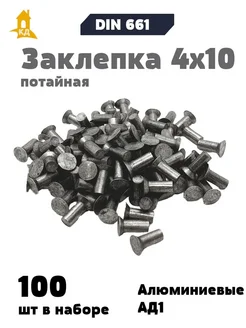 Заклепка с потайной головкой 4х10 алюминиевая, 100 шт