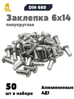 Заклепка с полукруглой головкой 6х14 алюминиевая, 50 шт