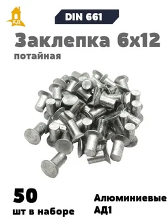 Заклепка с потайной головкой 6х12 алюминиевая, 50 шт