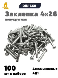 Заклепка с полукруглой головкой 4х26 алюминиевая, 100 шт