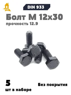 Болт шестигранный DIN 933 M 12х30 прочность 12,9, 5 шт