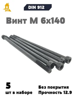 Винт М 6х140, прочность 12,9, без покрытия, DIN 912, 5 шт