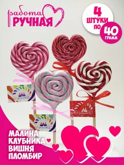 Леденцы на палочке "Сердце", 4шт по 40гр
