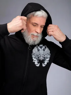 Толстовка худи мужская с принтом с начесом на молнии