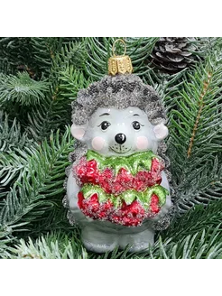 Стеклянная елочная игрушка Ежик с малиной