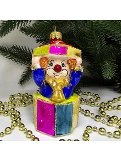 Елочная игрушка, стекло Клоун в коробке (10,5х5,5х5,5см)