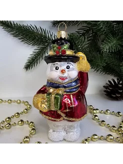 Елочная игрушка, стекло Снеговик (10х5,5х5см)