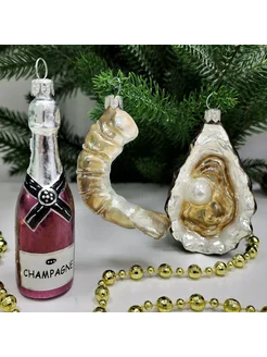 Набор ёлочных игрушек Креветка, устрица и шампанское