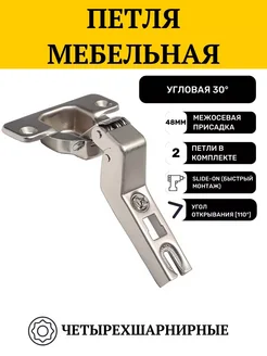 Петля мебельная угловая Slide-on, 30° (110°), 48мм, 2 шт