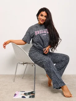 Костюм домашний со штанами трикотажный леопардовый