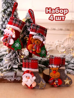 Новогодний носок для подарков, 4 шт