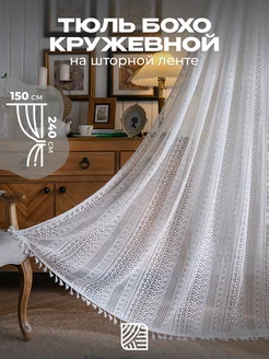 Тюль 150х240 см кружевной, вязаный под лен бохо
