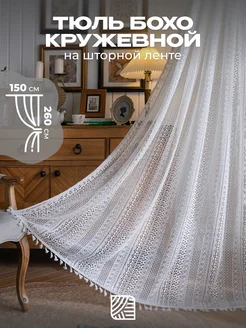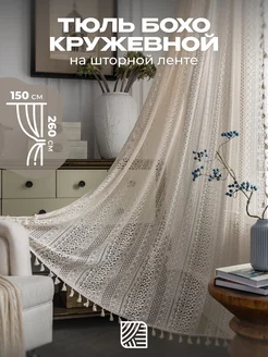 Тюль 150х260 см кружевной, вязаный под лен бохо
