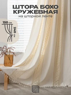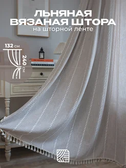 Штора 132х240см Бохо под лен с кисточками
