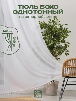 Тюль 140х240 см однотонный, с кисточками под лен бохо