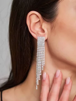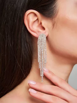Серьги бижутерия длинные вечерние со стразами