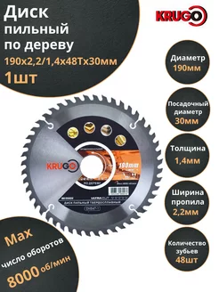 Диск пильный по дереву 190х2,2 1,4х48Тх30 мм 1шт