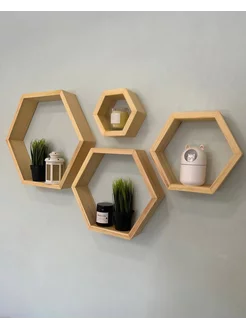 Настенные интерьерные полки соты из дерева